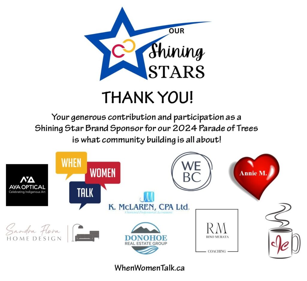A huge thank you to last year’s Tree Sponsors – our Shining Stars!